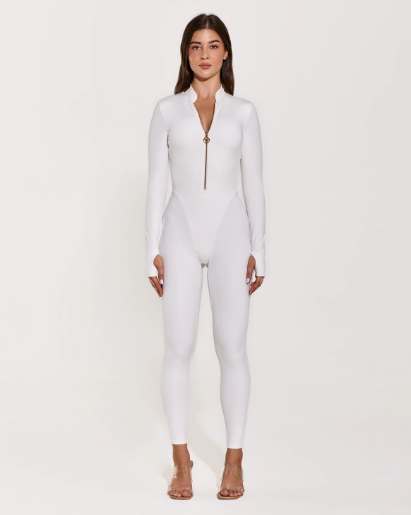 A sleek and modern women’s overall that embodies the beauty of simplicity. The tank-top design offers comfort and freedom, while the soft, flexible fabric gently hugs the body. The V-shaped seams at the front and back, with an underbust seam for subtle support, create a sculpted, flattering fit. A centered logo detail on the front adds a touch of understated sophistication. Perfect for casual days, sporty outfits, or effortless, minimalist looks that still make a statement.