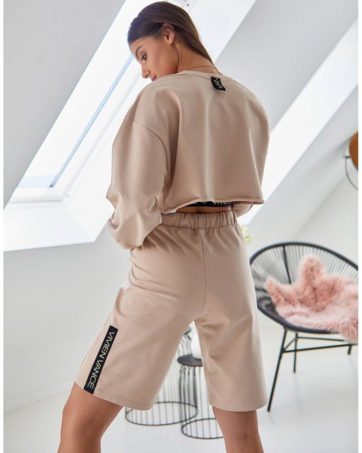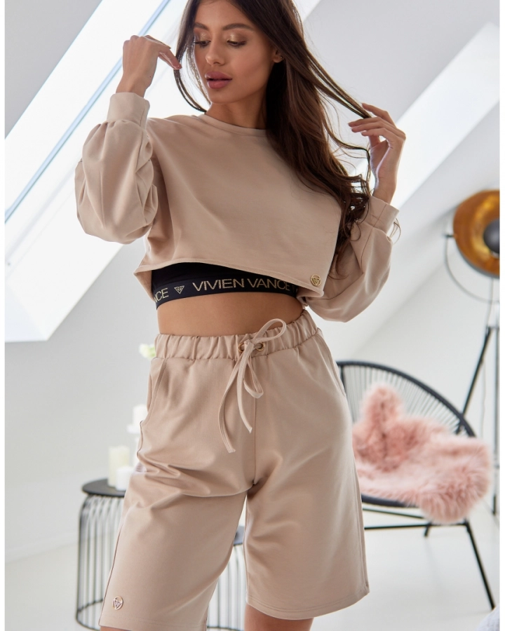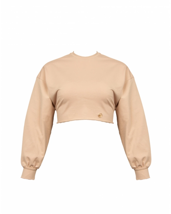 Stylish and comfortable long-sleeved cotton blend sweater, which is short and loose-fitting. The material composition is 92% cotton and 8% elastane, ensuring comfort and durability. The sweater is fashionable and practical, an ideal choice for everyday wear.
