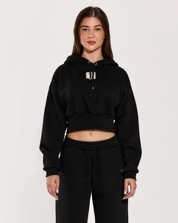 A warm and comfortable oversized hoodie that blends style with practicality. Crafted from soft accolade material, it ensures a relaxed, flattering fit. Front pockets add convenience, while the written logo at the center creates a clean, modern accent, making this hoodie perfect for everyday wear, lounging, or casual-chic outfits.