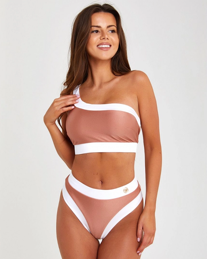 Haut de bikini asymétrique à demi-épaules unique et élégant. Fabriqué sans éponge, il présente une fine doublure à la fois confortable et respirante. La large sangle en caoutchouc en bas assure une prise stable, afin que vous puissiez rester à l'aise et confiant tout au long de la journée. Fabriqué à partir d'un mélange de 80 % de polyamide et de 20 % d'élasthanne, ce haut est confortable.