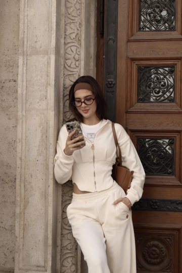 Rövid fazonú cipzáras kapucnis felső elülső zsebekkel